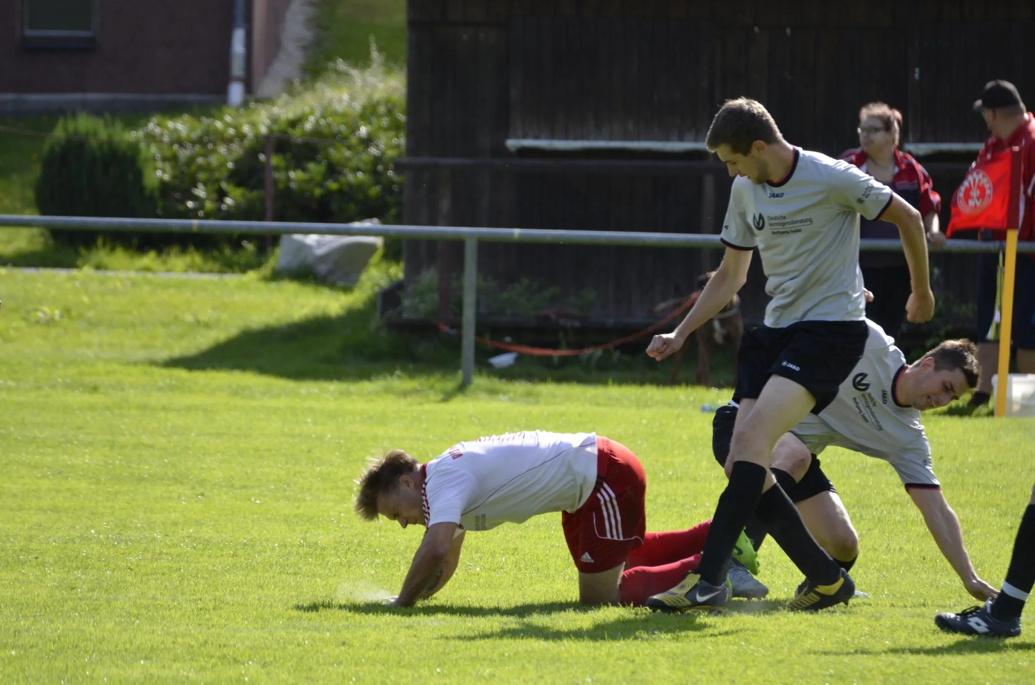 Kam man noch gut in die Partie setzte es mit der erneut schwereren Verletzung von Keeper Wiesner die erste Enttäuschung des Tages. Mit einem Doppelpack innerhalb von 5 Minuten nutzten die Gastgeber die entstandene Verunsicherung gandenlos aus. Unser Team musste zudem mit Mothes M. einen weiteren verletzten Spieler auswechseln. Doch mit dem Pausenpfif kam unser Team auf 2:1 wieder heran.