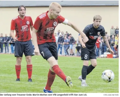 Nachdem es mit einem o:o in die Pause ging, sollte die zweite Halbzeit voll und ganz nach Herzogs Vorstellungen laufen. Zwar war es wieder Treuen, das Druck aufbaute, doch das 1:0 fiel auf der anderen Seite. Lengenfelds Kapitän Martin Mothes trug sich als Erster in die Torschützenliste ein. „Ein sehr guter Angriff" bescheinigt auch Trainer Herzog.