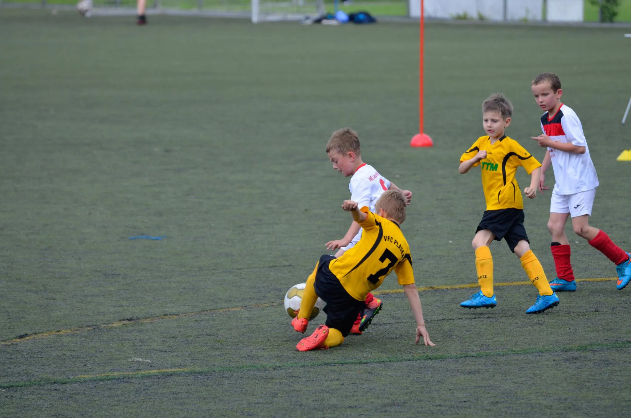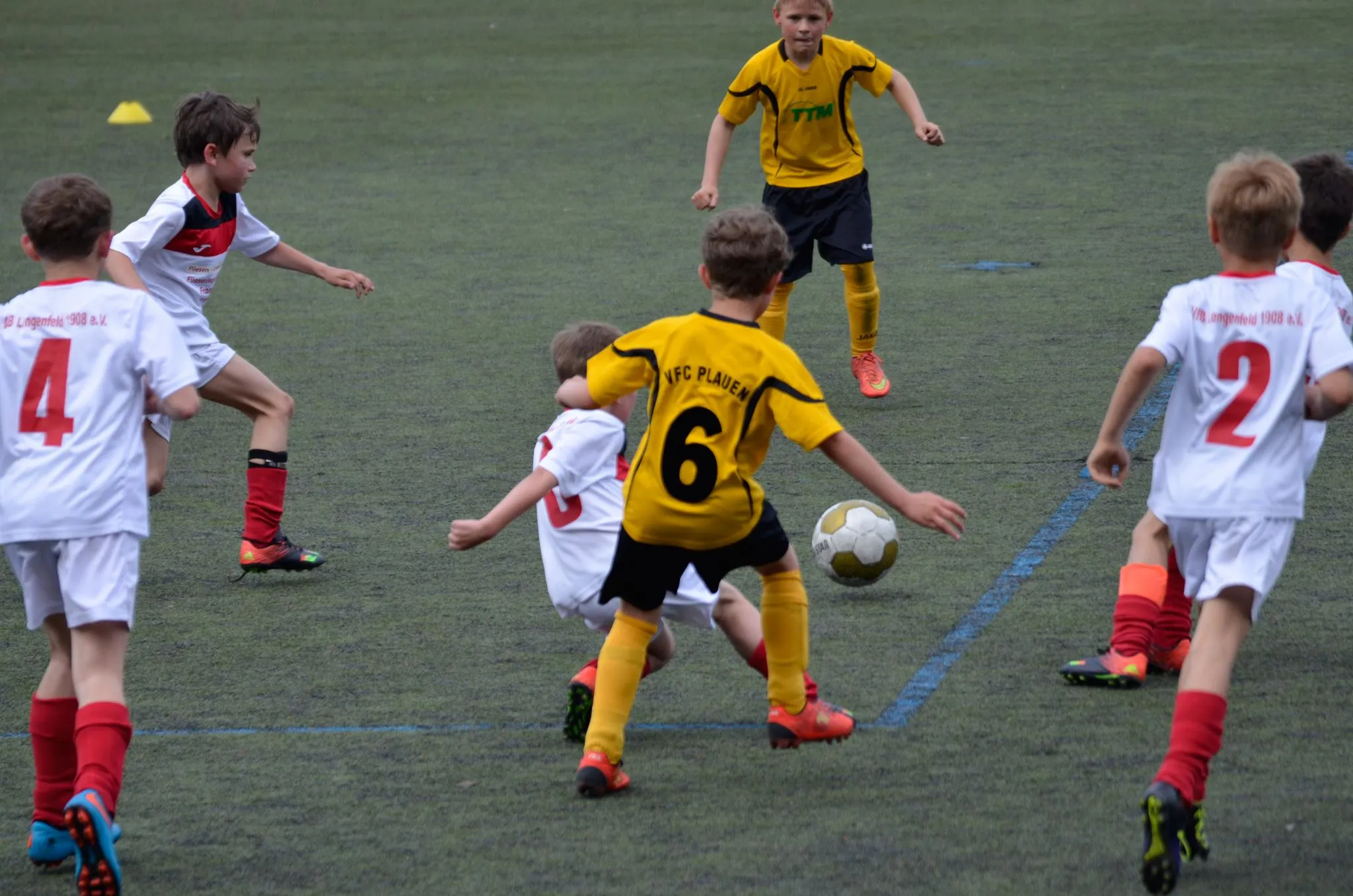 Und ebenfalls wie in der Vorwoche schien dieser auch zu fruchten. Immerhin machten wir jetzt deutlich mehr Druck und kamen durch Ben in der 22. Minute auch zum ersten Treffer. Die Gastgeber wirkten nun etwas beeindruckt, zumindest agierten sie defensiver als in Hälfte eins. Wir schafften es nun auch öfter uns mal durch zusetzen. Und konnten in der 30. Minute sogar auf 3:2 erhöhen. Erneut war es Ben der durch Mithilfe eines Plaueners den Anschlusstreffer erzielte. Doch hätte der Plauener den Ball nicht noch abgefälscht, wäre auch Finn zur Stelle gewesen. Nun schien wohl alles wieder wie am vergangenen Spieltag in Reichenbach zu laufen. Halbzeitstand 3:0, Aufholjagd und schließlich das 3:2. Doch anders als in Reichenbach, ließ sich der Gegner nicht wirklich vom zweiten Tor beeindrucken und sie spielten einfach wieder mehr nach vorn. Und so kamen sie in der 33. Minute auch zum nächsten Tor. Vorangegangen war ein Strafstoß, da Luca unglücklich mit seinem Gegenspieler den Laufweg kreuzte und ihn so zu Fall brachte. Doch fast im Gegenzug sollten auch wir einen Strafstoß bekommen, als Finn von seinem Gegenspieler mit beiden Händen umgeschupst wurde. Der Gefoulte übernahm dann auch gleich selbst und verwandelte überlegt zum erneuten Anschlusstreffer. Nun warfen wir noch einmal alles nach vorn und gingen hohes Risiko ein, um doch noch einen Punkt mit nehmen zu können. Doch das Tor machten die Gegner, mit einem Konter, bei den ein Plauener ungestört durch die Mitte marschieren und den Ball ins lange Eck schieben konnte. Nun war unsere Gegenwehr gebrochen und wir hatten keinen Glauben mehr an einen Punktgewinn. Plauen erhöhte dann noch auf 6:3, was gleichzeitig der Endstand war.