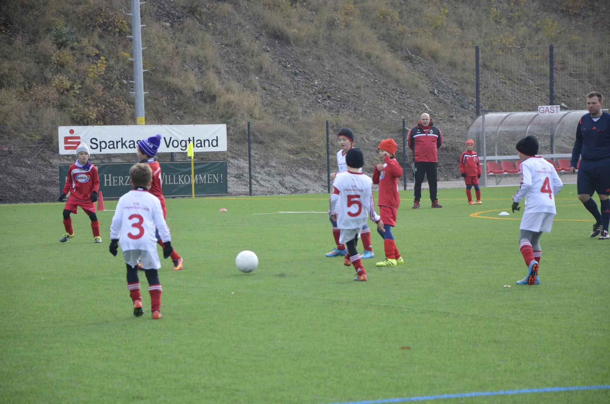 Und so legten wir auch gleich los wie die Feuerwehr, bereits nach 11 Minuten sollte es schon 3:0 stehen. Immer wieder spielte unser Team wunderschöne Pässe in die Tiefe und konnte damit immer wieder allein auf den Torwart zu laufen. Im Unterschied zu den letzten Spielen vermochten wir es diesmal die sich bietenden Chancen eiskalt zu nuten. Auch die Ecken wurden diesmal viel besser getreten. Und so war es unser Kleinster, Ben, der das 2:0 per Kopf nach einer Ecke erzielen konnte. Der Gegner war vor allem in der Anfangsphase gefährlich, doch unsere Defensive konnte immer wieder noch einen Fuß dazwischen bringen. Bis zur Pause erhöhten wir das Ergebnis mit teilweise sehr schönen Treffern auf 6:1.