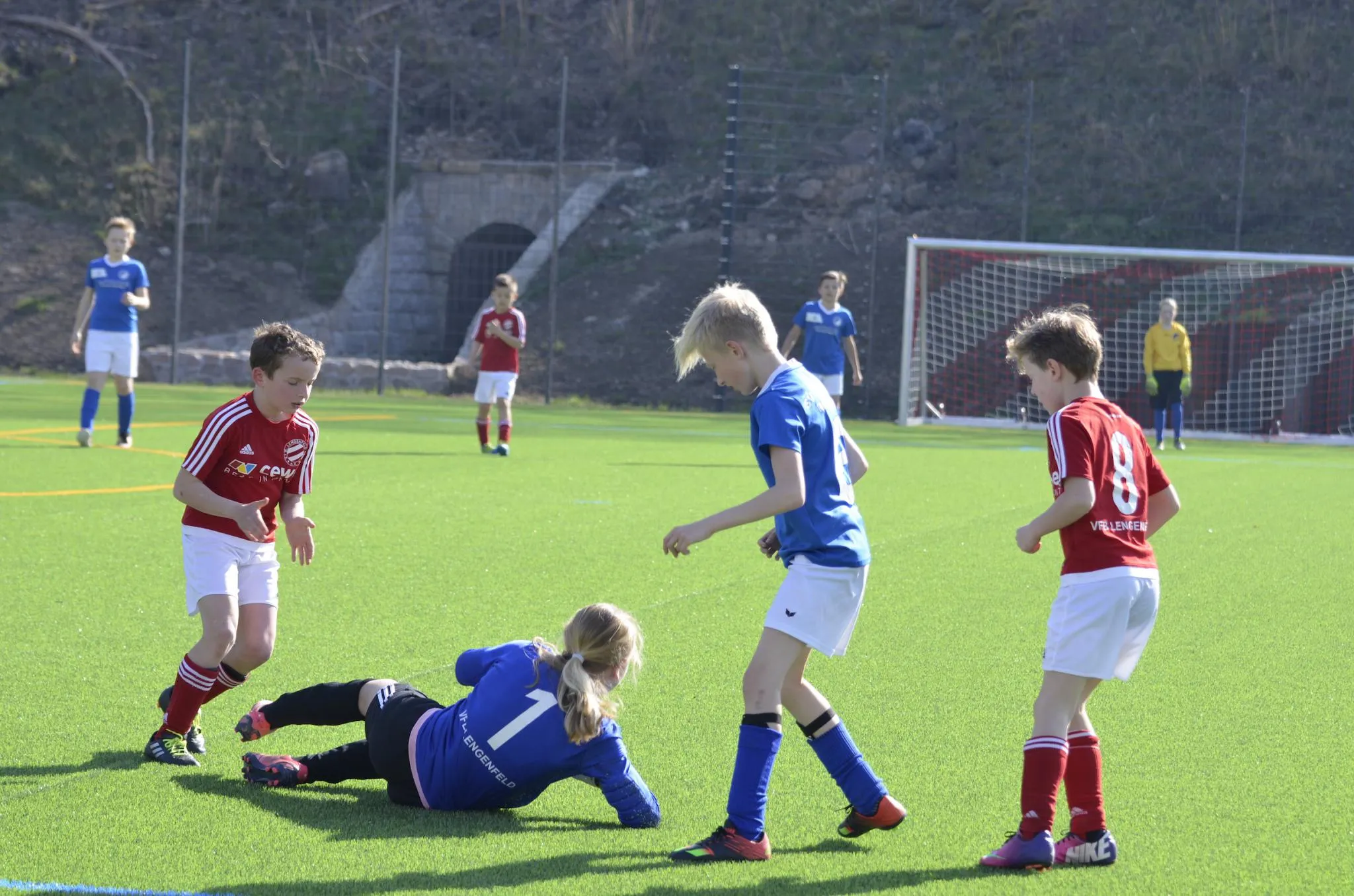 Doch mit dem Rückstand sollten langsam alle aufwachen und besser ins Spiel kommen. Finn hatte dann die erste Chance für unser Team auf dem Fuß. Und auch die Gäste sollten eine weitere Großchance bekommen, doch der Ball landete lediglich am Pfosten. Dann war allerdings Schluss mit lustig, ab der 8. Minute erspielten wir uns Chancen im Minutentakt und wurden immer gefährlicher. Nach zwei Chancen durch Luca und Ben (Kopfball) war es Finn der in der 11. Minute den Ausgleich markieren konnte. Direkt danach hatte er auch noch die Chance auf 2:1 zu erhöhen doch er scheiterte allein vorm Torwart. Also machte er es in der 15. Minute, nach Zuspiel von Ben. Bis zur Pause konnte unser Team durch Tore von Luca und Paul auf 4:1 erhöhen. Vom Gegner kam bis auf einige lange Bälle nicht mehr so viel.