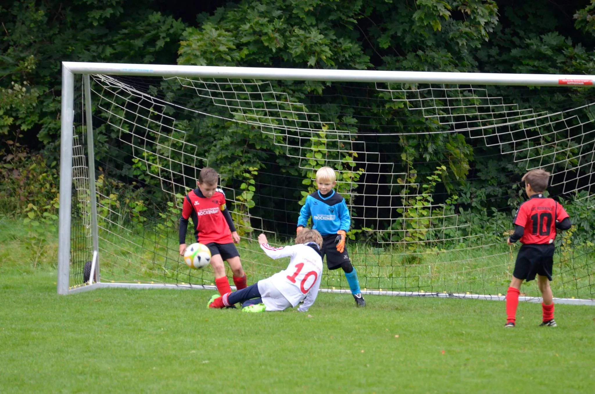 Die Jungs der E-Jugend hatten im Ligawettbewerb noch etwas gut zu machen. Nach der unnötigen Niederlage in Morgenröthe darf man sich nun keinen Fehltritt mehr erlauben, möchte man im Frühjahr in der Meisterrunde antreten. Mit dem Gedanken im Hinterkopf gingen unsere Jungs also das dritte Auswärtsspiel in Folge an. Bei leichtem Regen und seifigem Untergrund konnten wir uns spielerisch behaupten und gingen früh in Führung (2. Minute), Ben köpfte eine Finn-Ecke ein. Gleich die nächste Situation sollte das 2:0 bringen, diesmal umgedreht, Ben auf Finn und der trifft. Nach einem Eigentor der Rodewischer sollte die Entscheidung schon frühzeitig gefallen sein. Dennoch präsentierte sich unser Team torhungrig und netzte bis zur Pause noch weitere 4 mal ein. Ein Gegentor musste man dabei allerdings auch hinnehmen, nach dem etwas Verwirrung unter den Spielern herrschte und plötzlich alle dachten das Spiel sei unterbrochen, erkannte ein Rodewischer die Situation schneller und machte sich allein auf den Weg zum Tor...