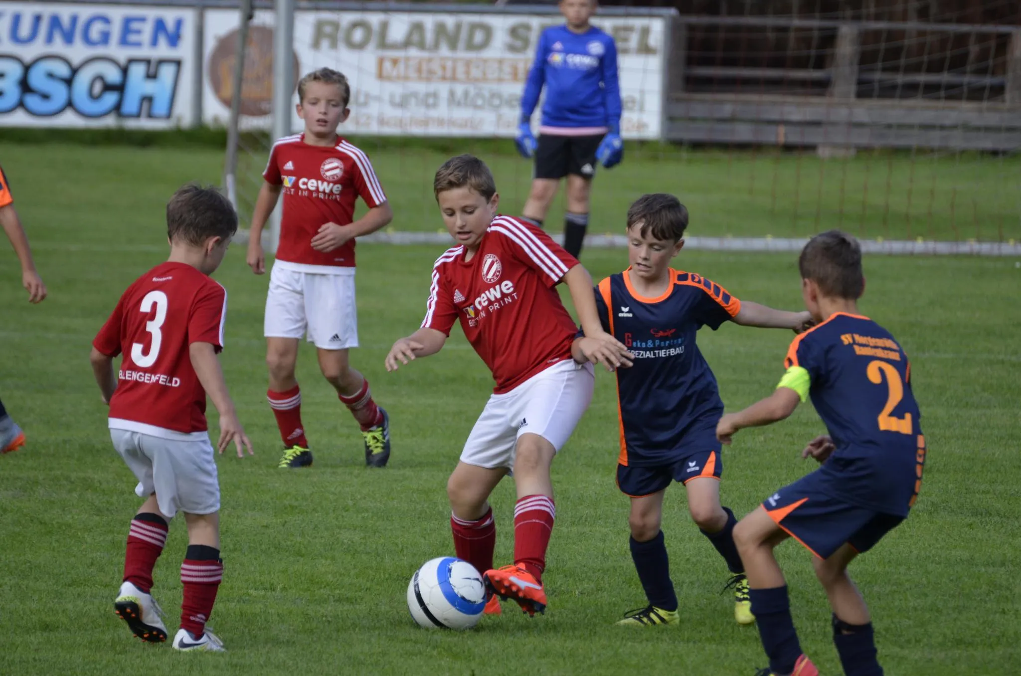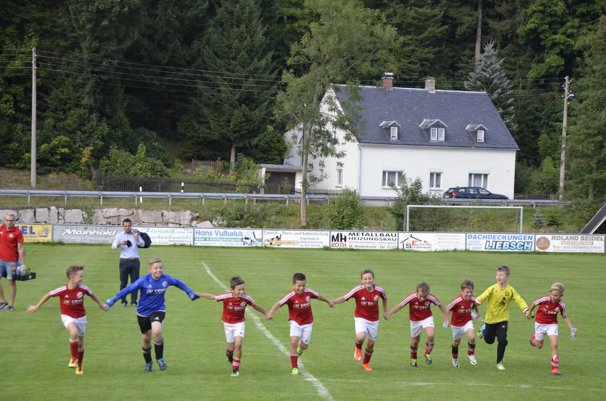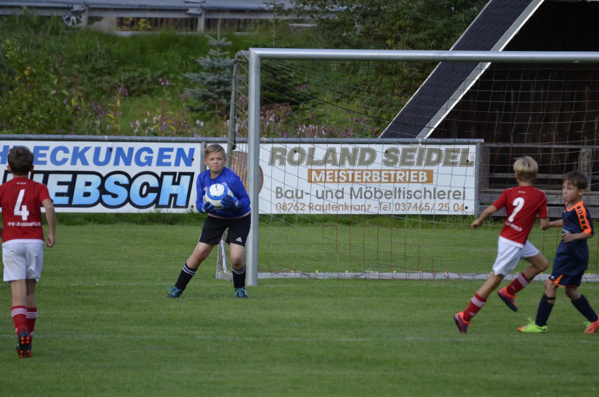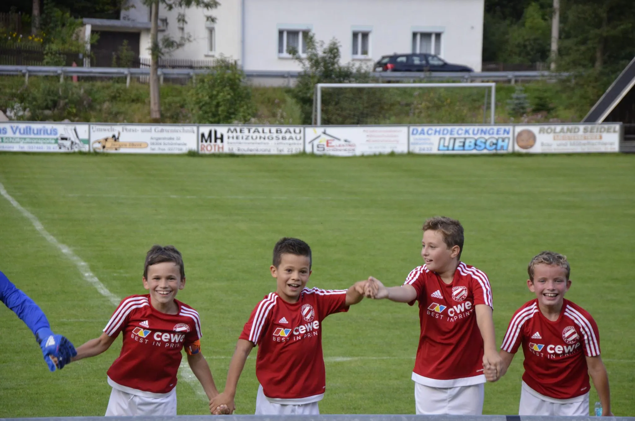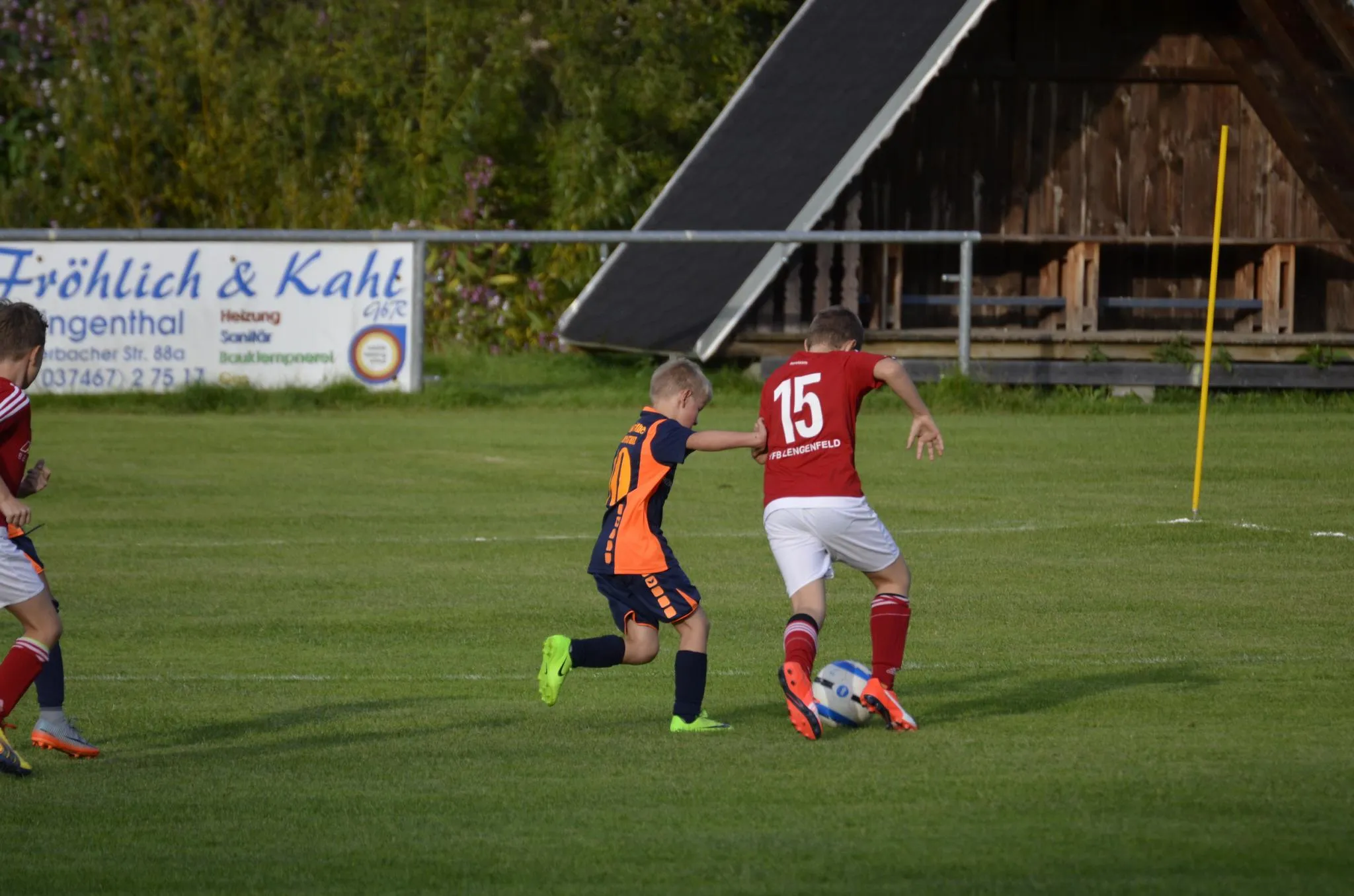 Zu Beginn setzte unser Team den Gegner gleich gut unter Druck und kam somit zu Chancen. Mit mehr Glück und Geschick im Abschluss hätte sich der Gegner über einen deutlichen Rückstand nicht beschweren können. Doch es dauerte bis zur 9. Minute ehe Luca zur Führung einschieben konnte. Als Vorarbeiter setzte sich Ben über Außen durch und zeigte das Auge für seinen Mitspieler. Fünf Minuten später dann der Ausgleich. Der Gegner setzte unsere Abwehr gut unter Druck und eroberte den Ball in der gefährlichen Zone. Aber der Wille war da und prompt folgte im Gegenzug der Ausgleich. Ein langer Ball sehr gut von Finn per Kopf weiter geleitet und Ben lässt sich die Chance allein vorm Torwart nicht nehmen. Nun schien der Knoten geplatzt zu sein. Bis zur Pause gab es immer wieder sehr starke Spielzüge, welche nun auch endlich mal genutzt wurden.