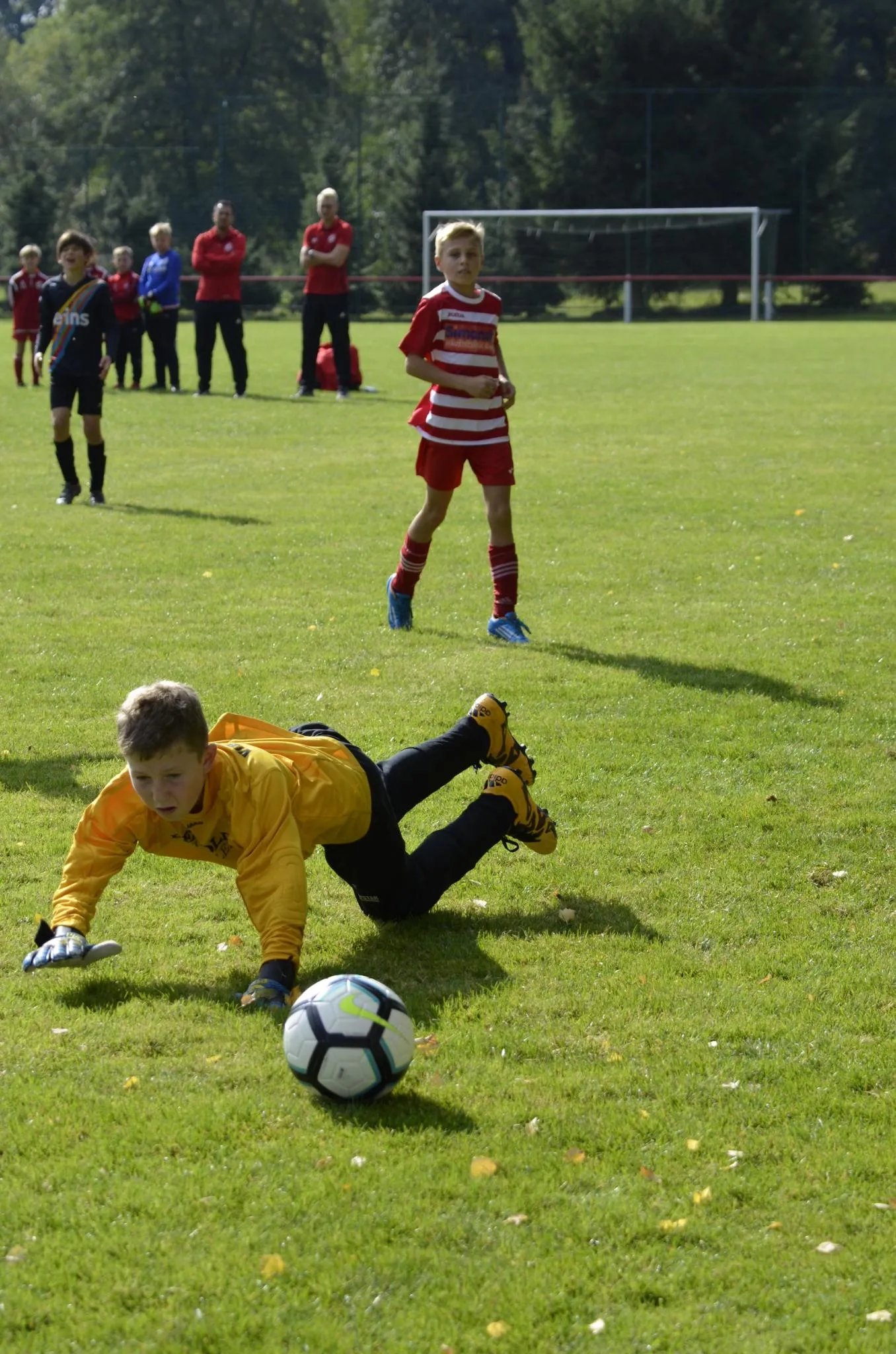 Mit einigen gesundheitlich angeschlagenen und noch fehlenden Spielern, war unserem Team bewusst, dass es in Reumtengrün nicht leicht werden würde. Zumal der Gegner einige körperlich größere und kräftigere Spieler in seinen Reihen hatte. Dennoch nahmen wir den Kampf an und versuchten es dem Gegner so schwer wie möglich zu machen. Neben einigen guten Abwehraktionen, war es aber vor allem unser Schlussmann Justin der uns in der ersten Hälfte lange im Spiel hielt. Nach Vorn gelang uns erstmal wenig, was aber nicht heißen soll, das wir nicht zu Chancen kamen. Nur die Abschlüsse waren zu harmlos. Als unsere Defensive dann doch durch einen satten Weitschuss geschlagen war, beeinträchtigte das unsere Moral in keiner Weise und so erzwangen wir durch Luca 5 Minuten später den Ausgleich. Danach war der Gastgeber kurz leicht verunsichert und wir konnten das Geschehen auch mal länger über die Mittellinie verschieben. Leider mussten wir dann allerdings doch noch zwei Tore bis zur Pause hinnehmen. Wobei es sehr ärgerlich war, weil die Tore eigentlich nicht wirklich herausgespielt waren und Justin auch immer noch die Hände am Ball hatte, der aber doch noch zweimal gerade so ins Tor trudelte. Doch es nützte nichts, in der zweiten Halbzeit hieß es einfach weiter dagegen halten und die eigenen Chancen nutzen.