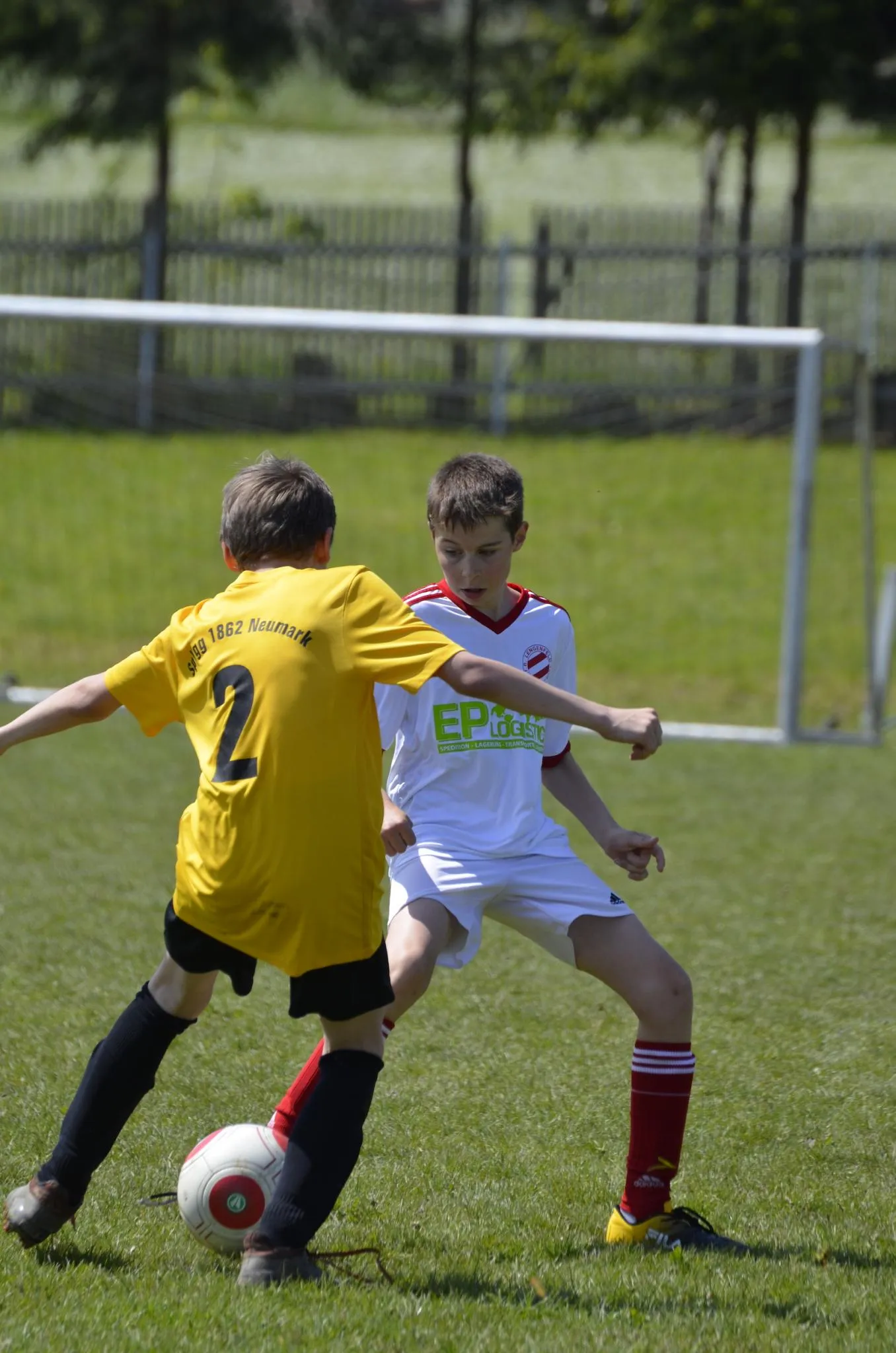 An diesem Samstag sollte es ein anderes Spiel werden. Auf dem sehr großen und schwierig zu bespielenden Platz hatten unsere Jungs zunächst Mühe sich zurecht zu finden. Bereits nach 10 Minuten hatte man das Gefühl das alle schon platt sind. Doch man arbeitete weiter und kam bis zur Halbzeit zu einer 2:0 Führung. Dabei nutzte unser Tim zwei Chancen nach Eingaben eiskalt aus. In der Defensive ließen wir nichts anbrennen.