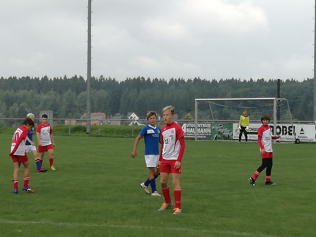 Nach dem wir am vergangenen Mittwoch im Pokalspiel gegen die starke Spielgemeinschaft Rodewisch/Wildenau die erste Niederlage der Saison hinnehmen mussten, hieß es gestern zurück finden. In den ersten 10 Minuten hatten wir so unsere Probleme auf dem nassen Rasen in Rebesgrün. Den Blau- Weißen gelang es immer wieder unsere Abwehr zu überspielen und sie hatten ein paar Chancen. Ab ca. der 15. Minute fingen wir uns dann und machten Druck auf das Rebesgrüner Tor aber auch uns gelang kein Treffer. Die überragende Torwärterin von Rebesgrün hielt ihren Kasten sauber. Alle hohen Bälle pflügte sie herunter. Erst in der 25. Minute sollte es uns dann doch gelingen sie zu überwinden. Kelvyn umspielte sie sehr geschickt und schoss das 0:1 für uns. 2 Minuten später war es wiederum Kelvyn, ein starker Pass von Paul in die Tiefe und Kelvyn zieht im spitzen Winkel ab ins kurze Eck, 0:2 . Die schönen Pässe von Paul in die Tiefe und der gute Laufweg von Kelvyn brachten immer wieder Gefahr für Rebesgrün. Das dritte Tor viel auf ähnliche Art und Weise. Das kuriose an der Sache ist, dass ich in der Pause kurzzeitig die Mannschaft umstellte, weil Kelvyn hinten spielen wollte. Er dann auf linker Abwehrposition zwei Rückpässe spielte, die alle beide zu kurz gespielt waren und Rebesgrün das Angebot annahm und dadurch immer wieder den Anschlusstreffer erzielten. Die Blau -Weißen wurden durch uns selbst immer wieder ins Spiel gebracht. Ich stellte dann schnell wieder um und so haben wir kurz vor Schluss noch auf 2:4 erhöht. Somit konnten wir auch im 4. Punktspiel der D-Jugend einen Sieg erringen. Spieler das Tages ist auf alle Fälle Kelvyn, der die Spannung auf höchsten Niveau hielt und mit seinen 4 Toren uns den Sieg brachte.