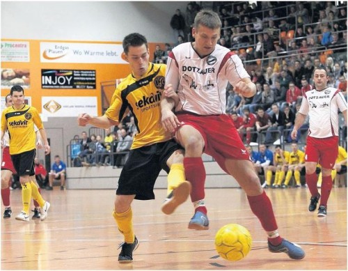 Plauen- Im letzten Zwischenrundenturnier bekamen die 602 Zuschauer in der Sporthalle an der Wieprechtstraße in Plauen gestern das Spiel mit den bisher größten Emotionen zu sehen. Nachdem die Staffel-Favoriten VFC Plauen II und Merkur Oelsnitz mit jeweils zwei Siegen gestartet waren, kam im direkten Aufeinandertreffen der Landesliga-Vertreter Hektik und Stimmung auf. Knolls Führung für die Plauener glich Göbel aus. Kurz darauf wurde der Oelsnitzer Hirsch wegen Handspiels für zwei Minuten auf die Strafbank geschickt. Der VFC konnte in dieser Überzahl-Situation aber kein Tor erzielen. In der Schlussphase erhielten die Plauener Hager und knapp zwei Minuten später Knoll nach Foulspiel jeweils eine Zwei-Minuten-Strafe. Die Hektik auf dem Parkett wurde immer größer. Hager hatte kurz vor Ultimo Glück, dass er für eine Undiszipliniertheit nicht die rote Karte sah. In der Schluss- sekunde gelang Beck, dem spielenden Torwart der Oelsnitzer, der umjubelte 2:1-Siegtreffer. Merkur Oelsnitz machte mit dem 4:2 über Werda den Einzug in die Endrunde und mit dem 3:0 im letzten Zwischenrundenspiel der diesjährigen Meisterschaft gegen Lengenfeld auch den Gruppensieg perfekt. Das schnelle Angriffsspiel des VFC Plauen kam indes lediglich gegen die Oelsnitzer ins Stocken. In den anderen vier Begegnungen fertigte die Regionalliga-Reserve die Gegner mit jeweils fünf Toren ab. Von den vier beteiligten Vogtlandliga-Vereinen gab der FC Werda als Turnierdritter die beste Figur ab, obwohl sich Torjäger Stipek schon zu Beginn des zweiten Spiels am Knie verletzte. Im für den erneuten Endrunden-Einzug wichtigen Spiel gegen Merkur Oelsnitz führte Werda bereits 2:0. Doch Hofmann und Stumpe glichen aus. Ein Werdaer ärgerte sich darüber so sehr, dass er für zwei Minuten vom Feld geschickt wurde. Hirsch machte mit zwei Toren in Überzahl den 4:2-Sieg für Merkur klar. Gegen den VFC Plauen gelang Werda zwar der zwischenzeitliche Ausgleich, doch am Ende siegte der Favorit klar mit 5:1. Die anderen drei Mannschaften konnten nicht in das Rennen um die Endrunden-Tickets eingreifen. Lengenfeld sicherte sich durch die Siege gegen Schöneck und Wernesgrün mit sechs Zählern den vierten Platz. Der VfB-Treffer zum 4:0-Endstand gegen Wernesgrün von Müller war zugleich das 1100. Tor der Hallenkreismeisterschaft. Den 1111. Treffer erzielte der Schönecker Zapfe mit der zwischenzeitlichen 3:2-Führung gegen Wernesgrün. Am Ende hieß es in dieser Partie 3:3 Aufgebot VfB Lengenfeld 1908 : A.Baumgärtner, M.Mothes (3Tore), B.Müller(2) M.Rahmig(1) ,F.Riedel(1) ,P.Tautenhahn, E.Marckhoff, N.Berger, C.Mothes, T.Rudolph,